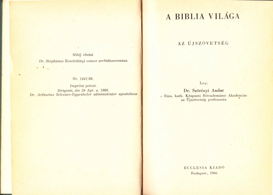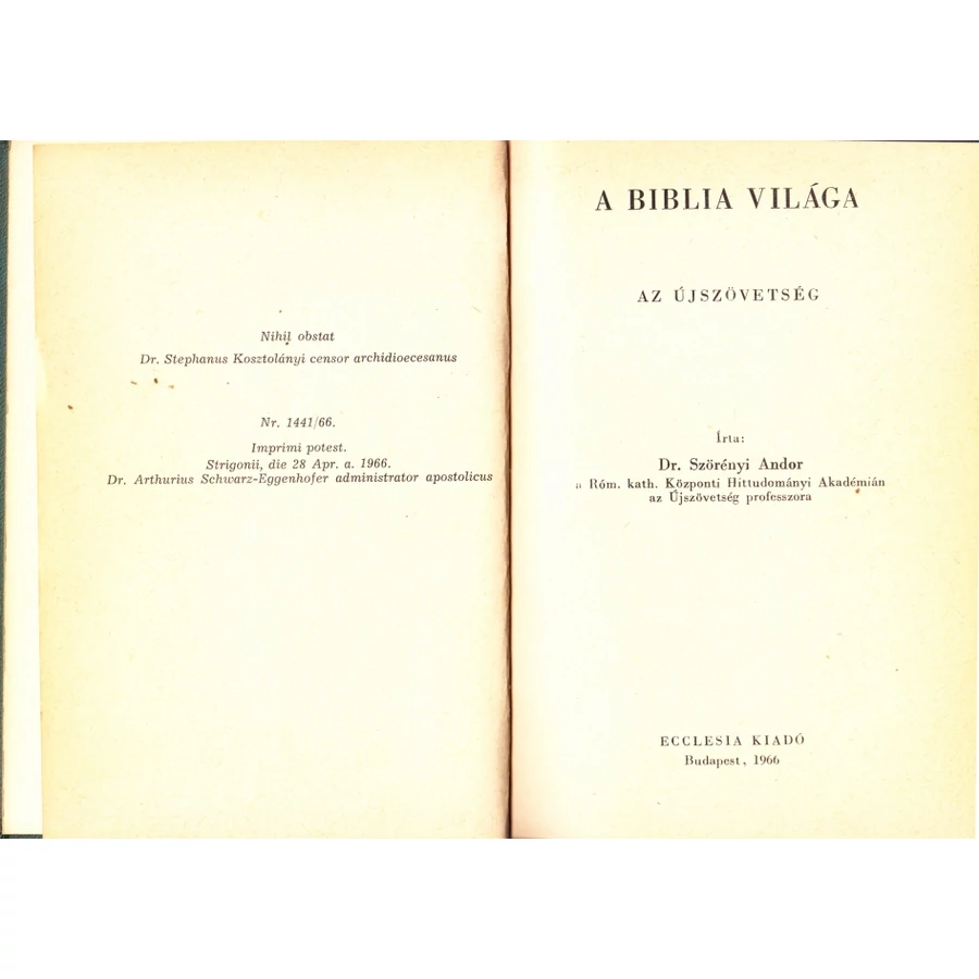 A könyv címe nem nagy kínnal kiagyalt, mesterkélt cím, hanem programadás, megvilágítása annak a célnak, mely szemem előtt volt a könyv megírásánál. Két világot szeretnék benne megrajzolni, leírni. Azt, melybe beleállt a megtestesült örök isteni Ige, a názáreti Jézus Krisztus, s amelyben az apostolok hirdették a megváltásról szóló „jóhírt" = evangéliumot, a szeretet végtelen kiáradásában magát a keresztfán feláldozó „ismeretlen Istent"... Ugyanakkor azonban le akartam írni azt a világot is, melyet az újszövetségi Szentírás tár föl, tanít és hirdet. Nem elégedhettem meg puszta irodalomtörténeti és irodalomkritikai kérdések tárgyalásával, mint ahogy a régi - rendszerint német mintára megalkotott - szentírási bevezetők, melyekből az ember megtanulhatta azt, hogy különböző szerzők mit gondoltak, mit írtak az Újszövetség egyes» könyveiről, csak éppen arról hallgattak, hogy mit mond maga a Biblia...