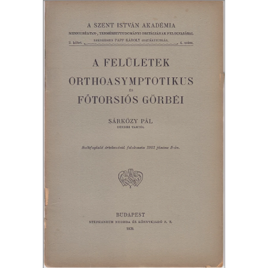 Székfoglaló értekezésül felolvasta 1921 június 3-án. Szép állapotú antikvár könyv.