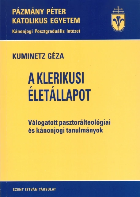 Klerikusnak azokat a férfiakat nevezzük, akik elnyerték az egyházi rend szentségének valamelyik fokozatát, ezzel felszentelt szolgálattevőkké váltak az Egyházban és Krisztusnak, mint főnek a személyében teljesítik tanítói, megszentelői és kormányzati feladataikat. A szolgálati papság tehát lényegileg különbözik a megkereszteltek ún. általános papságától. Ennek az életállapotnak az elnyerésével és sajátosságaival foglalkozik Kuminetz Géza ebben, a klerikusi életállapotnak szentel kötetében. A jelen munka rövid metszetét adja a katolikus lelkipásztor elengedhetetlen tulajdonságainak és a hivatásának teljesítésére vonatkozó hatályos egyházfegyelmi előírásoknak. A Szerző különös hangsúlyt helyez a lelkipásztor személyiségének és a sajátos papi jellemvonások kifejtésének, de ugyanígy behatóan foglalkozik a klerikusi kötelességek és jogok ismertetésével is. A Szerző ezzel az elemzésével folytatja azt a töretlen egyházi hagyományt, amely a szolgálati papság adott korban betöltendő küldetésének kereteit, feltételeit és lehetőségeit kívánja megvilágítani, teológiai és kánonjogi szempontból egyaránt. A mű kiegyensúlyozott és mértékadó módon igyekszik felhívni a papi élethivatásra készülők, az azt gyakorlók, de a felszentelt szolgálattevők hivatása iránt általánosan érdeklődők figyelmét is a Jézus Krisztus nagy missziós parancsában foglalt felszólításnak a XXI. század körülményei közötti teljesítésére. (A.R.D. Szuromi Szabolcs Anzelm O.Praem.)