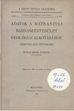 Adatok a mátrántúli barnaszénterület geológiai alkotásához.