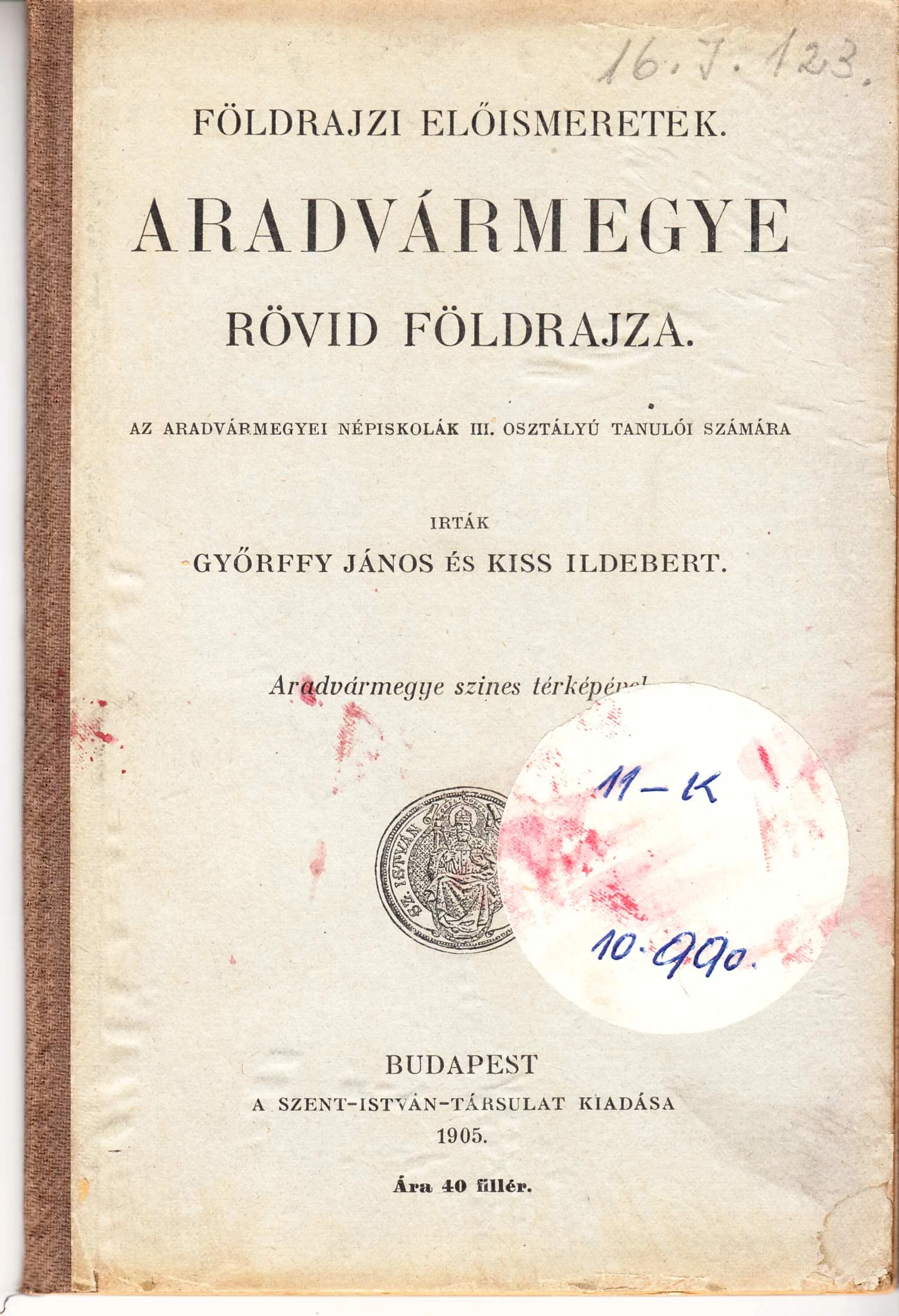 Aradvármegye színes térképével.