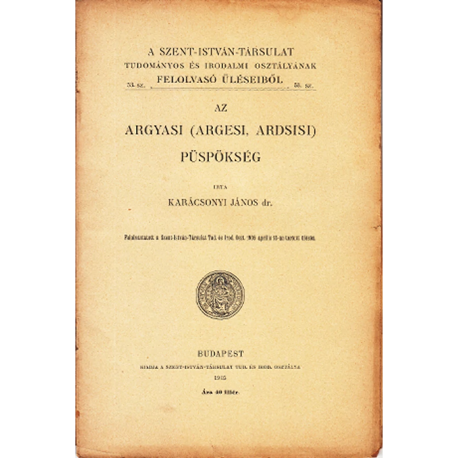 Felolvastatott a Szent-István-Társulat Tud. és Irod. Oszt. 1905. április 13-án tartott ülésén. Szép állapotú antikvár könyvritkaság, vágatlan lapokkal.