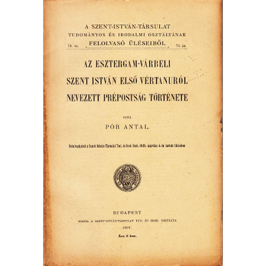 Felolvastatott a Szent-István-Társulat Tud. és Irod. Oszt. 1909. március 4-én tartott ülésében. Szép állapotú antikvár könyvritkaság, vágatlan lapokkal.