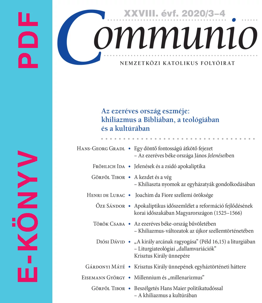 Tartalom: Hans-Georg Gradl: Egy döntő fontosságú átkötő fejezet – Az ezeréves béke országa János Jelenéseiben Fröhlich Ida: Jelenések és a zsidó apokaliptika Görföl Tibor: A kezdet és a vég – Khiliaszta nyomok az egyházatyák gondolkodásában Henri de Lubac: Joachim da Fiore szellemi öröksége Őze Sándor: Apokaliptikus időszemlélet a reformáció fejlődésének korai időszakában Magyarországon (1525–1566) Török Csaba: Az ezeréves béke-ország bűvöletében – Khiliazmus-változatok az újkor szellemtörténetében Diósi Dávid: „A király arcának ragyogása” (Péld 16,15) a liturgiában – Liturgiateológiai „dallamvariációk” Krisztus Király ünnepére Gárdonyi Máté: Krisztus Király ünnepének egyháztörténeti háttere Eisemann György: Millennium és „millenarizmus” Görföl Tibor: Beszélgetés Hans Maier politikatudóssal – A khiliazmus a kultúrában E-könyv/E-book megrendeléséről és teljesítéséről a fizetés, szállítás menüben olvashat bővebben.