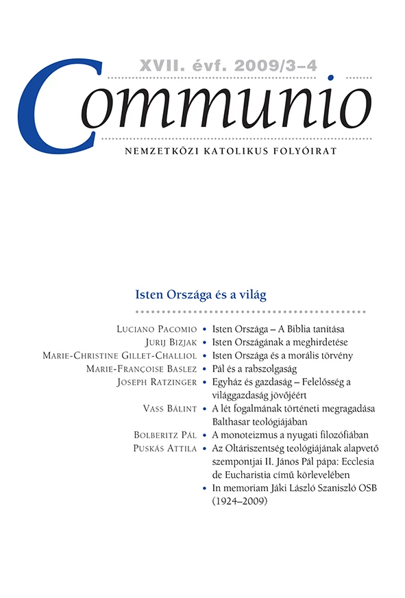 A Communio nemzetközi katolikus teológiai és kulturális folyóirat célja, hogy a kultúra teológiai összefüggésben való szemléletét közvetítse az egész világon. A folyóirat egy nemzetközi szerkesztőbizottság kezében van, ennek köszönhetően több nyelven jelenik meg. A nemzetközi szerkesztőbizottság határozza meg a folyóirat éves tematikáját, amely alapján a világ különböző részéről származó szakember szerzők elkészítik az előírt témának megfelelő cikkeket, tanulmányokat.