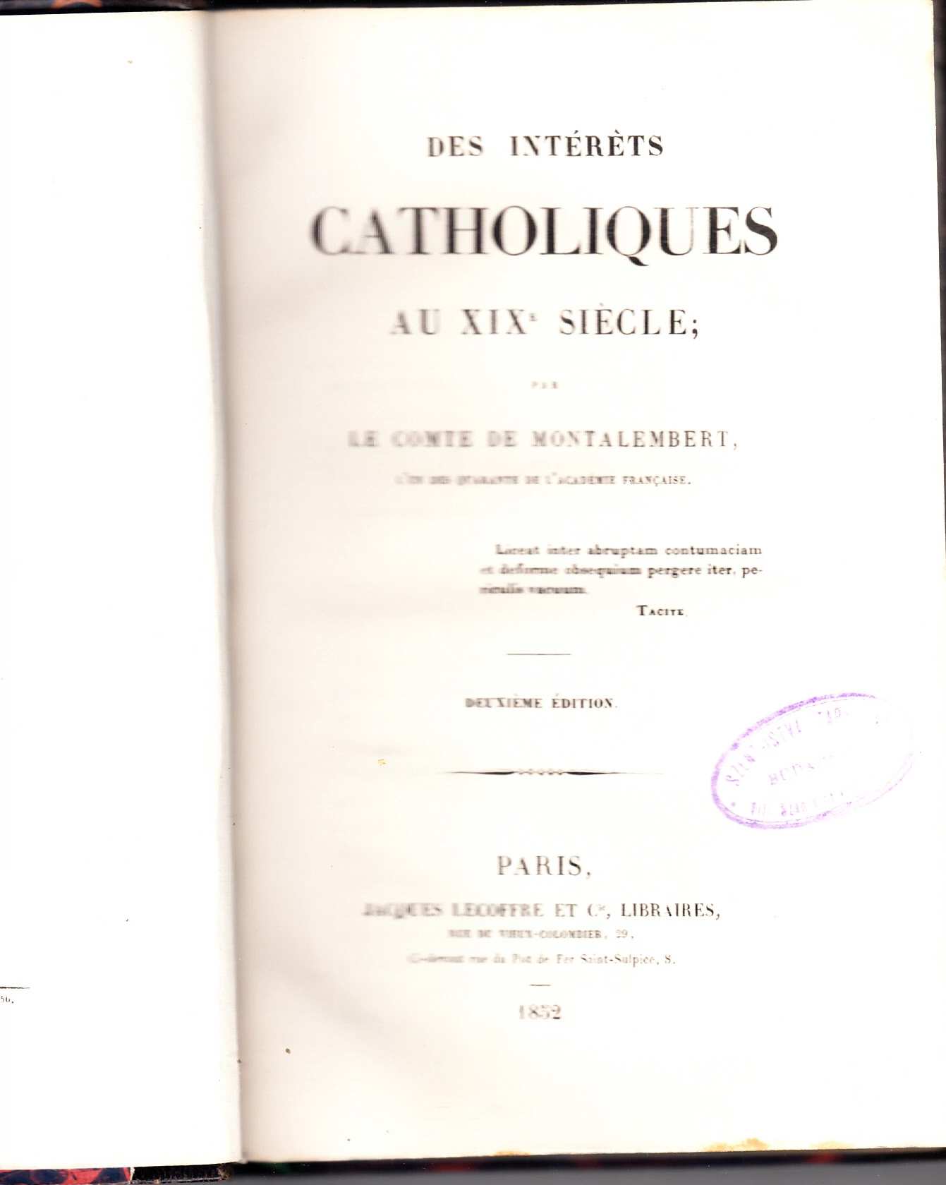 1852-es, második kiadás (Paris, Jaques et C, Libraires). Félbőr kötés, gerincén aranyozott felirattal.