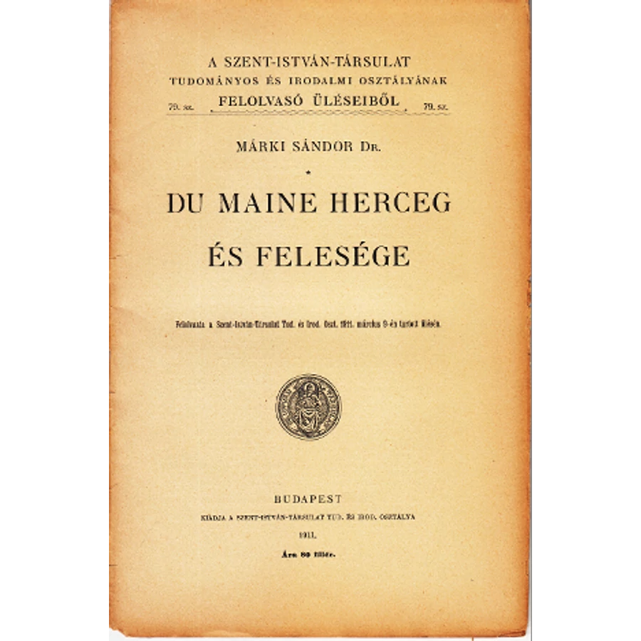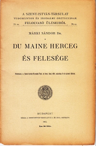 Felolvasta a Szent-István-Társulat Tud. és Irod. Oszt. 1911. március 9-én tartott ülésén. Szép állapotú könyvritkaság, vágatlan lapokkal.