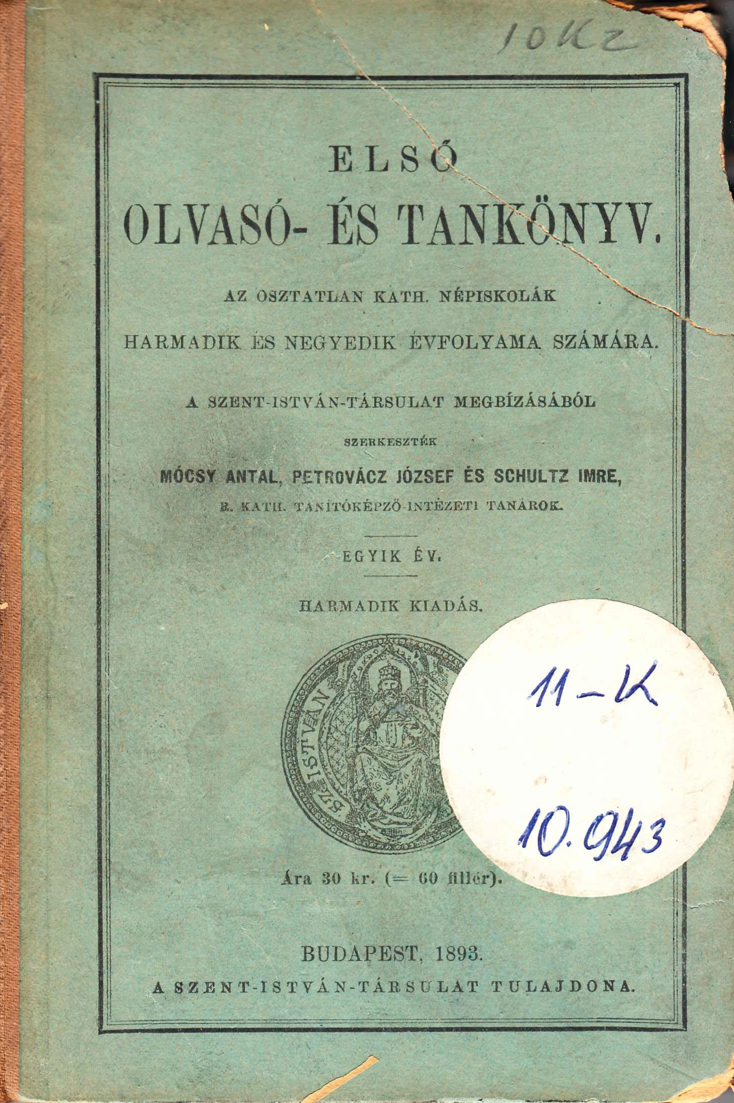 Harmadik kiadású korabeli tankönyv. A kartonborítón repedés, valamint ráragasztott könyvrári matrica található. A borító szélei kis mértékben hiányosak.