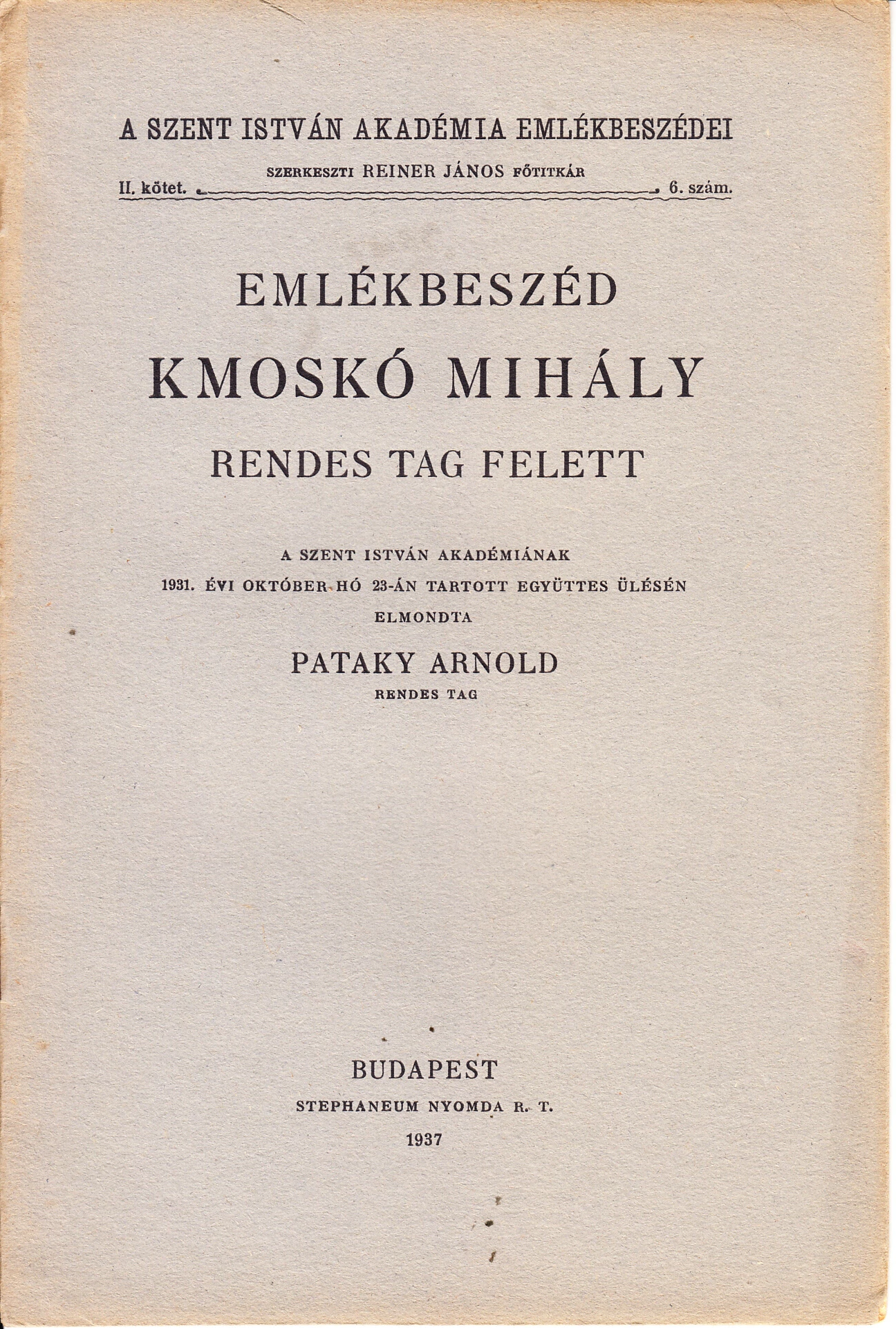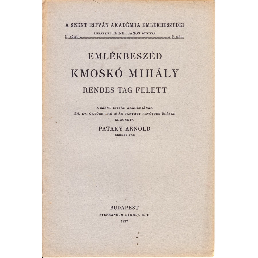Emlékbeszéd Kmoskó Mihály rendes tag felett
