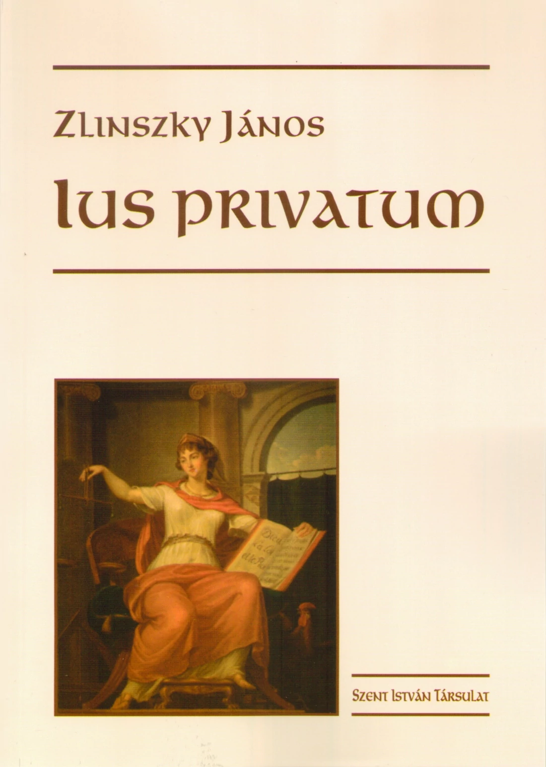 A magánjog az egyesek hasznát tartja szem előtt, szemben a közjoggal, amely a római közösség állapotát rendezi. Zlinszky János előző könyvében (Ius publicum) ez utóbbit tárgyalta, mostani kötete a római magánjog fejlődéstörténetét vázolja, mivel nélküle nem érthetők meg a mai jogi kultúránkhoz tartozó intézmények. A ius privatum fogalmi párja a mi magánjog fogalmunknak, és a magánemberek viszonyait rendező szabályok általában diszpozitív, a magánautonómia rendező elvét figyelembe vevő együttesét értjük rajta. A kötet részletesen taglalja a római magánjog történetének korszakait, és végigvezeti hatását, érvényesülését, módosulásait az első európai magánjogi kodifikációkon át egészen az emberi jogok megfogalmazásának igényéig, melyben újra érvényre jutott a ius privatum, az európai kultúra egyik pillére, az emberi jogok első megfogalmazása.
