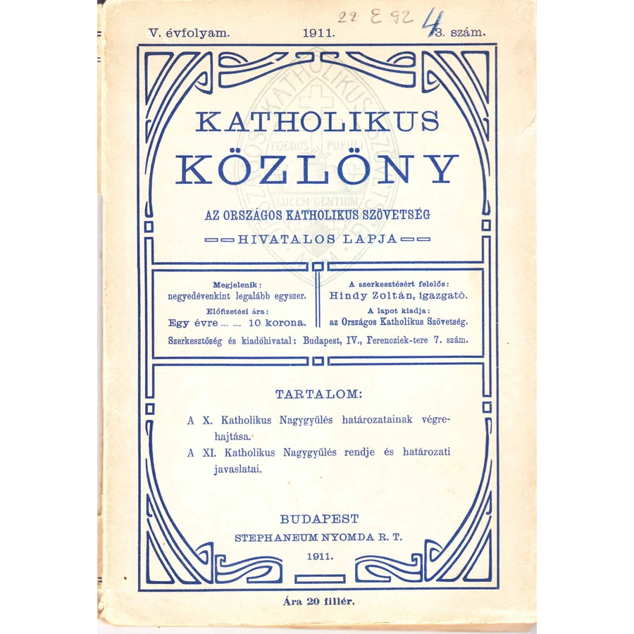 Az Országos Katholikus Szövetség hivatalos lapja. A X. és a XI. Katholikus Nagygyűlés rendje, határozatai és ezek végrehajtása.