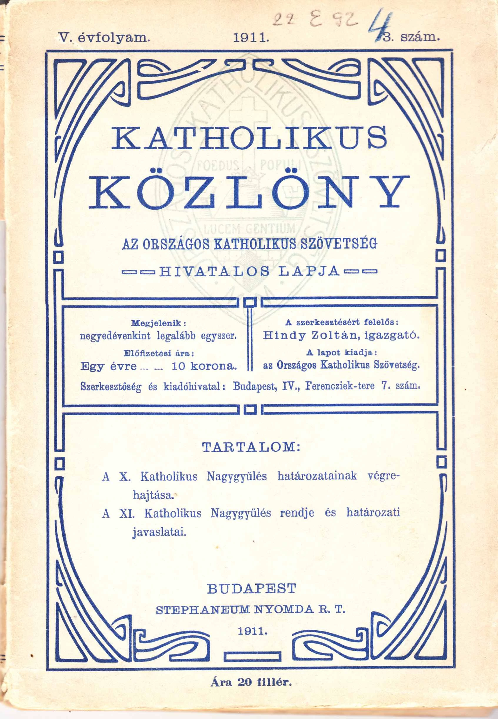 Katholikus Közlöny/1911. V. évf. 3. szám