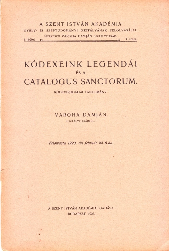 Kódexeink legendái és a Catalogus Sanctorum