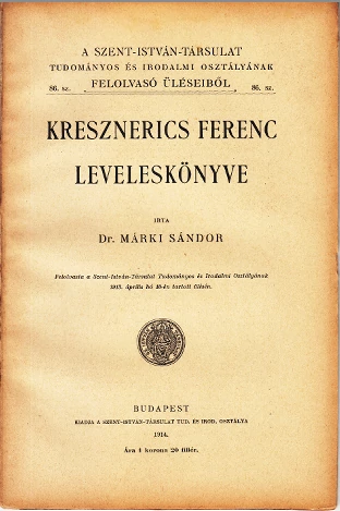 Felolvasta a Szent-István-Társulat Tud. és Irod. Oszt. 1913.április hó 10-én tartott ülésén. Szép állapotú könyvritkaság, vágatlan lapokkal.