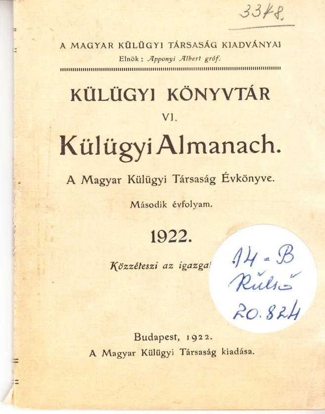 Külügyi almanach - A Magyar Külügyi Társaság Évkönyve 1922