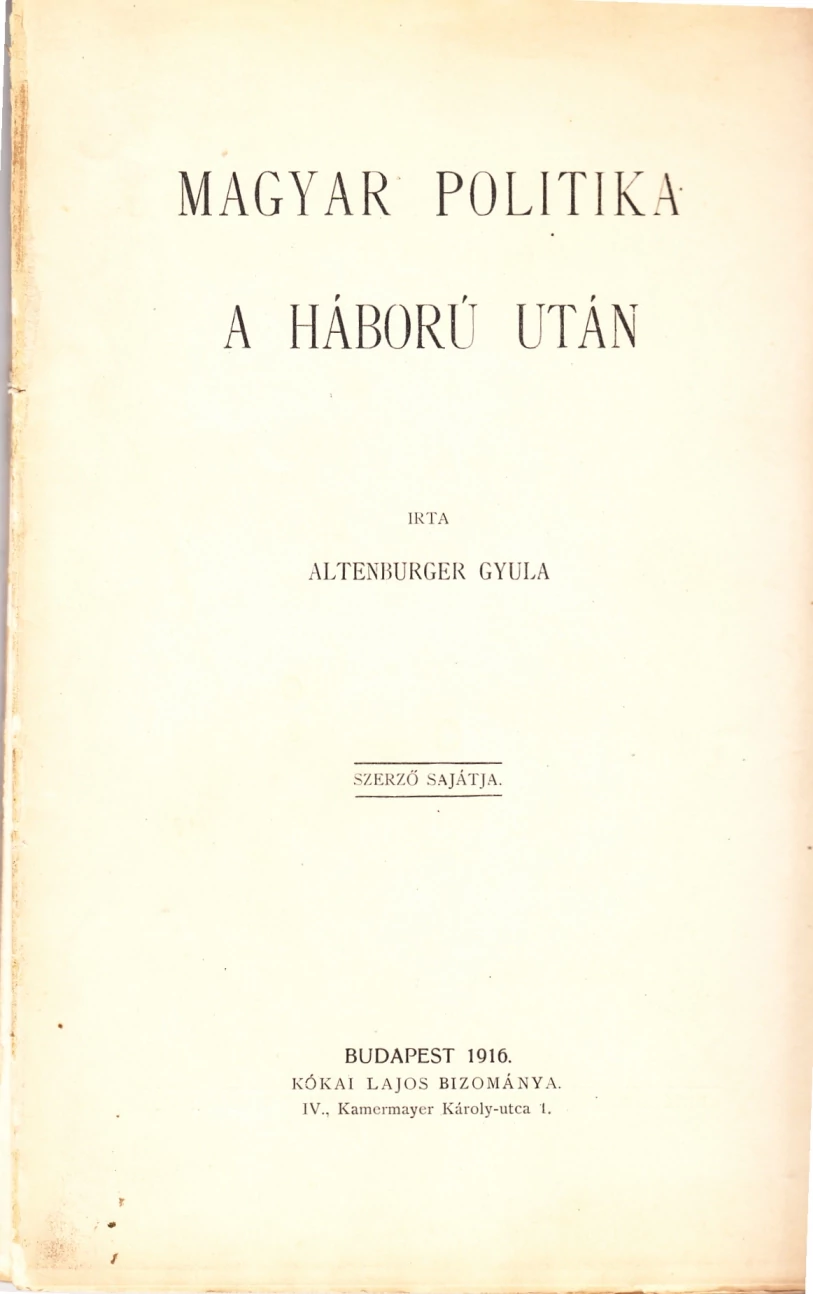 Kókai Lajos Bizománya, Budapest 1916. A boritó levált a könyvtől.