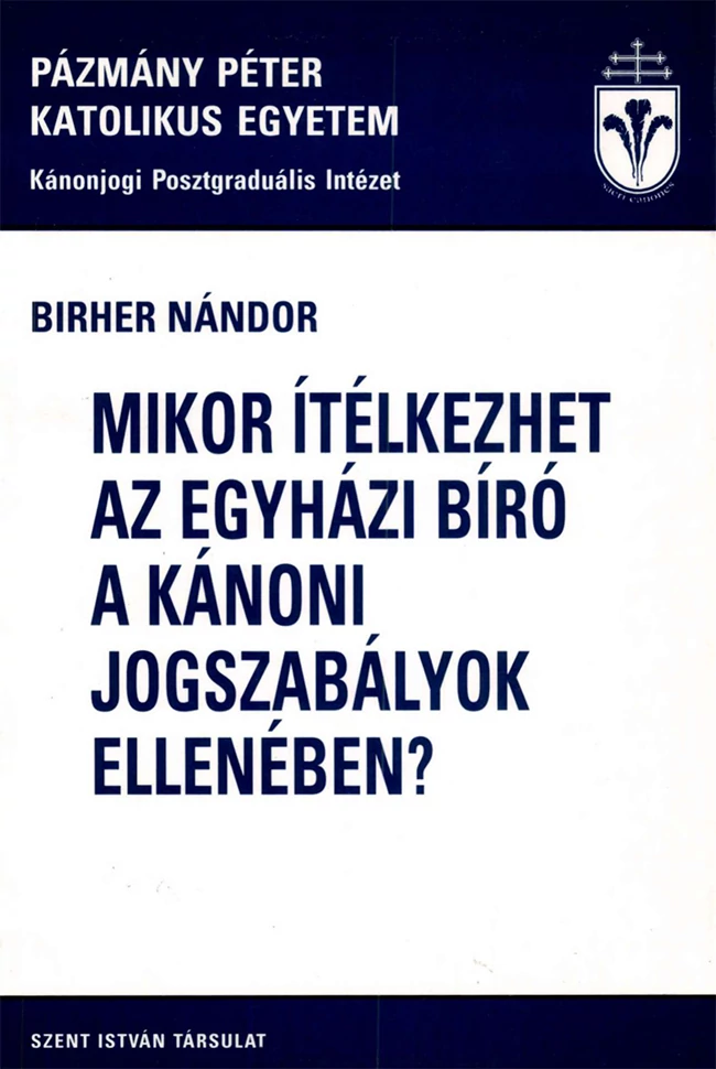 Birher Nándor disszertációja a bírói szabadságról, a normatív jogtól való eltérés lehetőségeiről értekezik. A bevezető fejezetek a bírói hatalom természetétől, e bírói hatalom kánonjogi értelmezéséről adnak összefoglalást és a bírónak a kánoni per folyamatában adott lehetőségeit tekintik át. Ennek az elméleti alapvetésnek az a célja, hogy a szerző a kánoni bíró tevékenységének határait elemezhesse: azokat az eseteket, amikor a bíró törvény és törvényhozó által megkötött keze felszabadul és az ítélkező eltérhet vagy eltérni kényszerült a kodifikált jogi normáktól. Az erre példát adó esetek sorát a felmentés és a joghézag esetei vezetik be; a szerző a források gondos elemzése révén állapítja meg azokat a cselekvési lehetőségeket, amelyek ilyen esetekben a bírói tevékenység és felelősség elemei. Olyan alapvető fogalmak kerülnek így terítékre, mint a jogi analógia, a szubszidiaritás jogelvei vagy az utólagos jogértelmezés - mindezek értelmezése során pedig a szerző folyamatosan elemzi a Kánonjogi Kódex kínálta értelmezési módokat, a világi jog párhuzamait és az egyház jogszolgáltatásának gyakorlatát. Külön fejezet témája a szokásjog és a tételes jog konfliktusának értékelése, a magától megszűnő törvény világa, majd a mű a törvénytől eltérő bírói gyakorlat kontrolljának áttekintésével zárul.