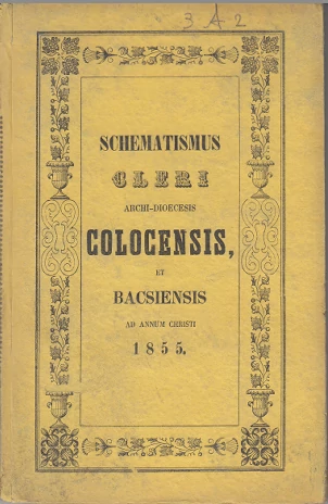 A Kalocsai egyházmegye sematizmusa 1855-ből.