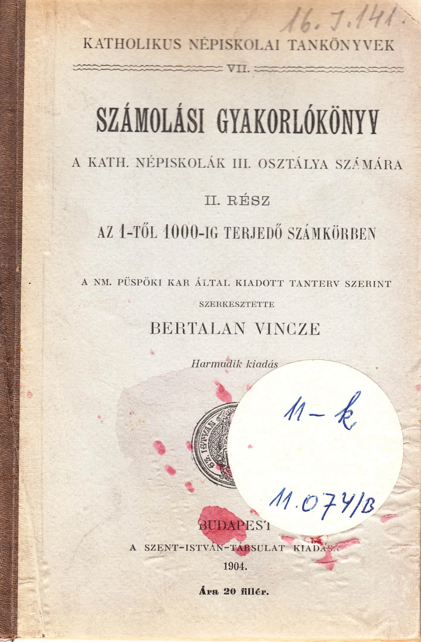 Számolási gyakorlókönyv a kath. népiskolák III. osztálya számára. II. rész