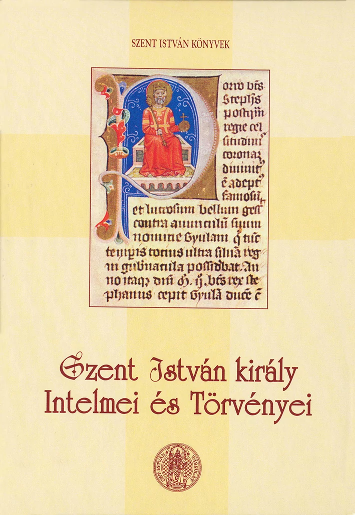 A kötet államalapító királyunknak fiához, Imre herceghez írott híres Intelmein kívül közli fennmaradt 56 törvényfejezetét is.
