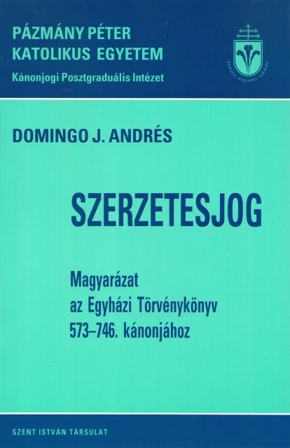 Domingo J. Andrés Szerzetesjog című könyve a Pázmány Péter Katolikus Egyetem Kánonjogi Posztgraduális Intézete megújuló sorozatának 2. köteteként jelent meg. A korábbi, Egyház és jog című sorozatot felváltotta a Bibliotheca Instituti Postgradualis luris Canonici Universitatis Catholicae de Petro Pázmány nominatae, amely a következő alsorozatokat foglalja magában: I. Institutiones (egyetemi tankönyvek), II. Manualia (tudományos kézikönyvek), III. Studia (tanulmánykötetek), IV. Dissertationes (disszertációk). Az Institutiones alsorozat első tagjaként Erdő Péter Az egyházjog forrásai című könyvének második kiadása látott napvilágot, ezt követi a sorozatban a jelen munka. A könyv szerzője, Domingo J. Andrés a Lateráni Egyetem professzora, több neves kánonjogi folyóirat főszerkesztője. Jelen művében a szerzetesjogot az Egyházi Törvénykönyv egyes kánonjaihoz fűzött magyarázatok útján ismerteti. E magyarázatok azonban messze túlnőnek az egyszerű értelmezésen. A kötetben lépten-nyomon találkozhatunk a korábbi Egyházi Törvénykönyvvel történő összehasonlításokkal: a kánonok ezáltal történeti dimenziót kapnak, s így bepillantást nyerhetünk az egyházjogi forrásoknak, a szerzetesjogi szemléletnek századunkban végbemenő változásaiba, a II. Vatikáni Zsinat által megfogalmazott irányelvek negyven-ötven éves előzményeibe. A szerző a magyarázatokat a XX. század második felében kiadott, egyéb hatályos jogforrások idézésével támasztja alá, amelyek nemegyszer a Törvénykönyvnél részletesebben fejtenek ki egy-egy témát. A jelen munka közérthető stílusban adja elő a szerzetesjogra vonatkozó naprakész ismereteket. Hasznos segítőtársa lehet "gyakorló" szerzeteseknek, elöljáróknak és a szerzetesség iránt érdeklődő nagyközönségnek egyaránt.