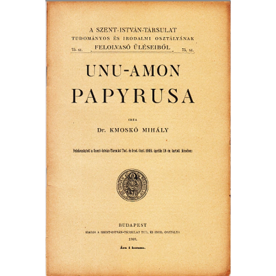 Felolvasta a Szent-István-Társulat Tud. és Irod. Oszt. 1909. április 29-én tartott ülésében. Nagyon szép állapotú könyvritkaság, vágatlan lapokkal.
