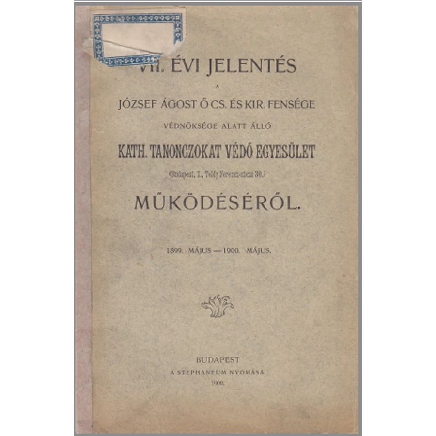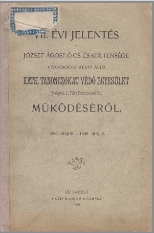 VII. évi jelentés Kath tanonczokat védő egyesület működéséről