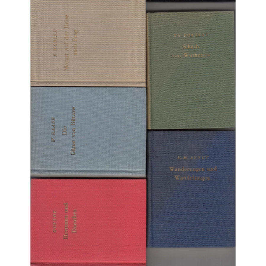 Német nyelvű öt kis kötet, papírtokban. Wanderungen und Wanderlungen mit dem reichsfreiherrn vom stein - die Gänse von Bützow - Hermann und Dorothea - Mozart auf der reise nach Prag - Schach von Wuthenow